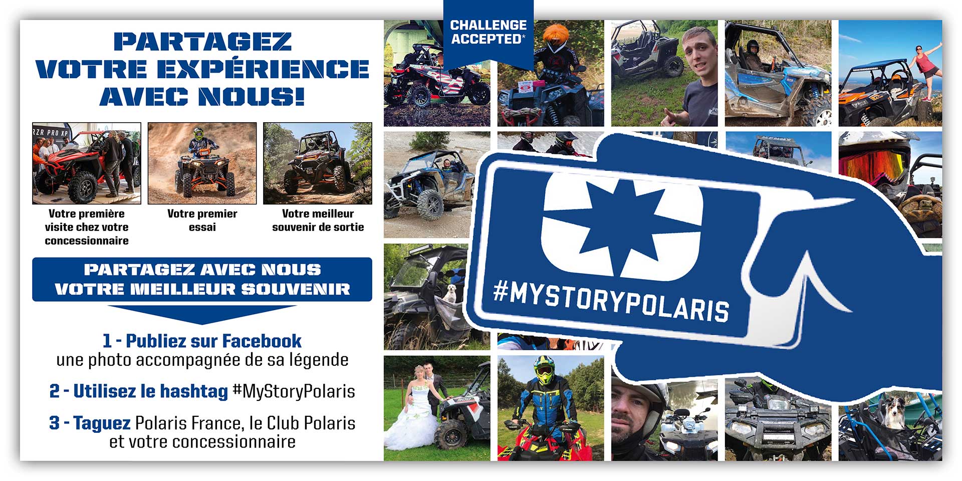 Chaque mois, la publication qui recevra le plus de like et d’interactions et qui se distinguera par la qualité et l’originalité de sa photo remportera le concours mensuel et un chèque cadeau d’accessoire et/ou d’équipement de 100€ à valoir chez son concessionnaire Polaris.
